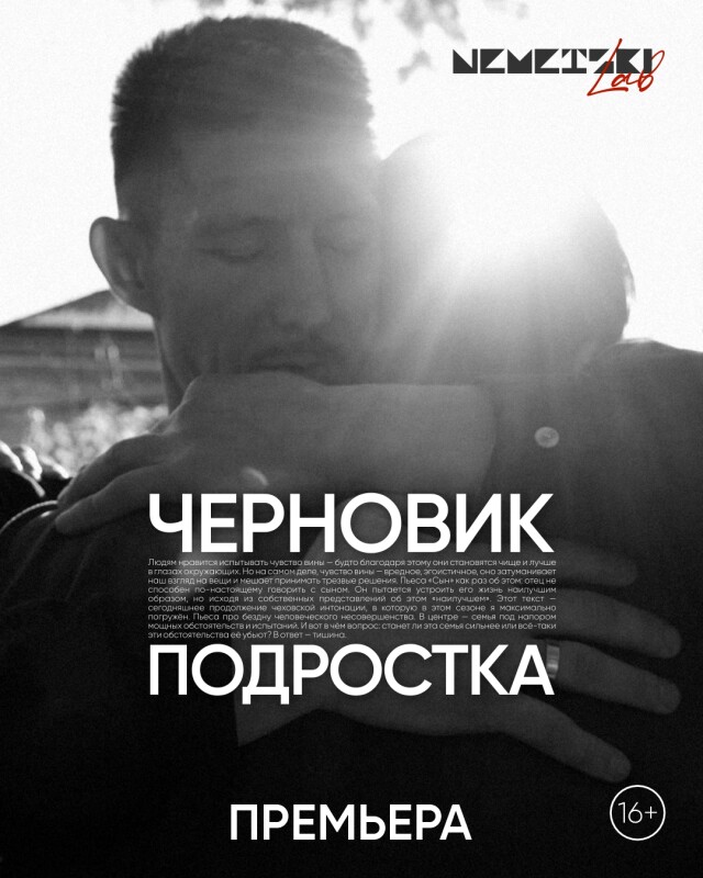 «Черновик подростка» -это спектакль про вынужденные компромиссы, про необходимость соглашаться с тем, с чем человек не хочет мириться. В этом человек разрушает свою природу, веру в идеальный мир - то, что Шекспир назвал «квинтэссенцией всего живущего». Идеализм и неприятие несправедливости в человеке невозможно уничтожить. И ничего тут нельзя изменить. А правильно это или неправильно - каждый решает сам.