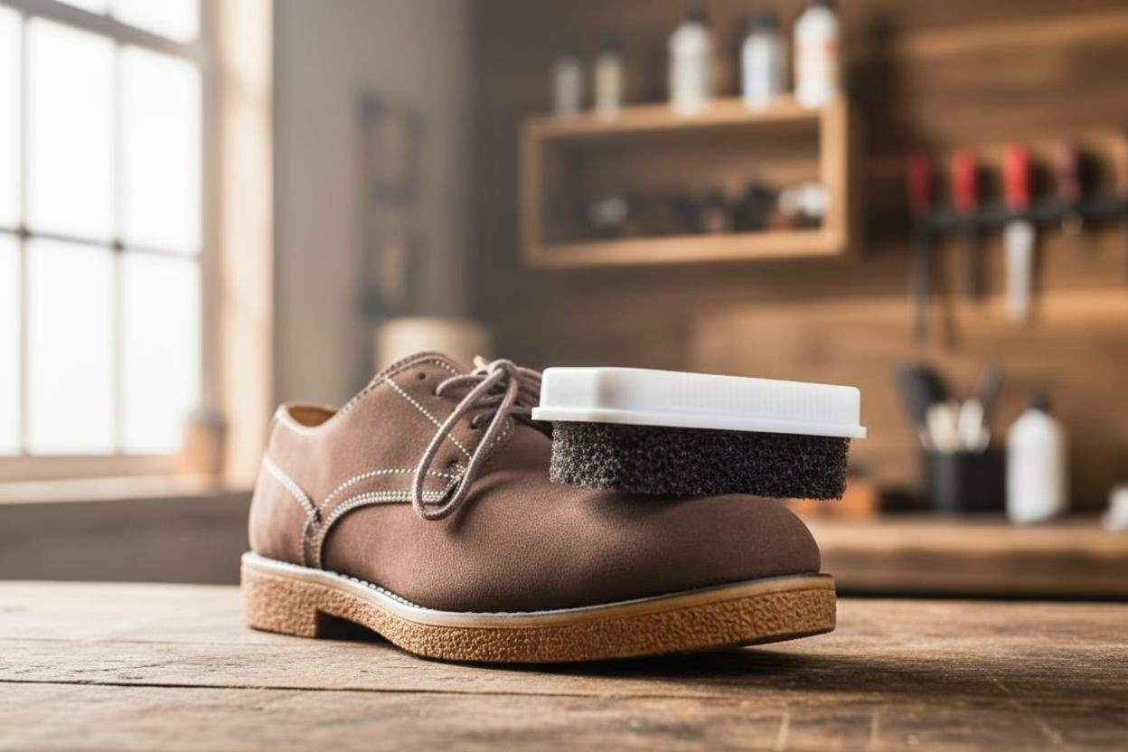 Нубук и замша - ворсовые материалы, требующие деликатного ухода. Из-за структуры ворса они легко собирают пыль, поэтому регулярная сухая чистка обязательна. Для ухода подойдут мягкие щётки для поднятия ворса, более плотные - для удаления сухой грязи, а также резиновые щётки для локальной чистки. Очищать поверхность следует в одном направлении, слегка поднимая ворс, а пятна удалять точечно. Регулярная обработка водоотталкивающим спреем раз в 5–7 дней помогает предотвратить появление белых разводов и сохранить насыщенность цвета. Нубук и замшу нельзя мыть водой, использовать кремы для кожи, применять грубые или металлические щётки и сушить у батареи. При потере цвета рекомендуется профессиональное восстановление.