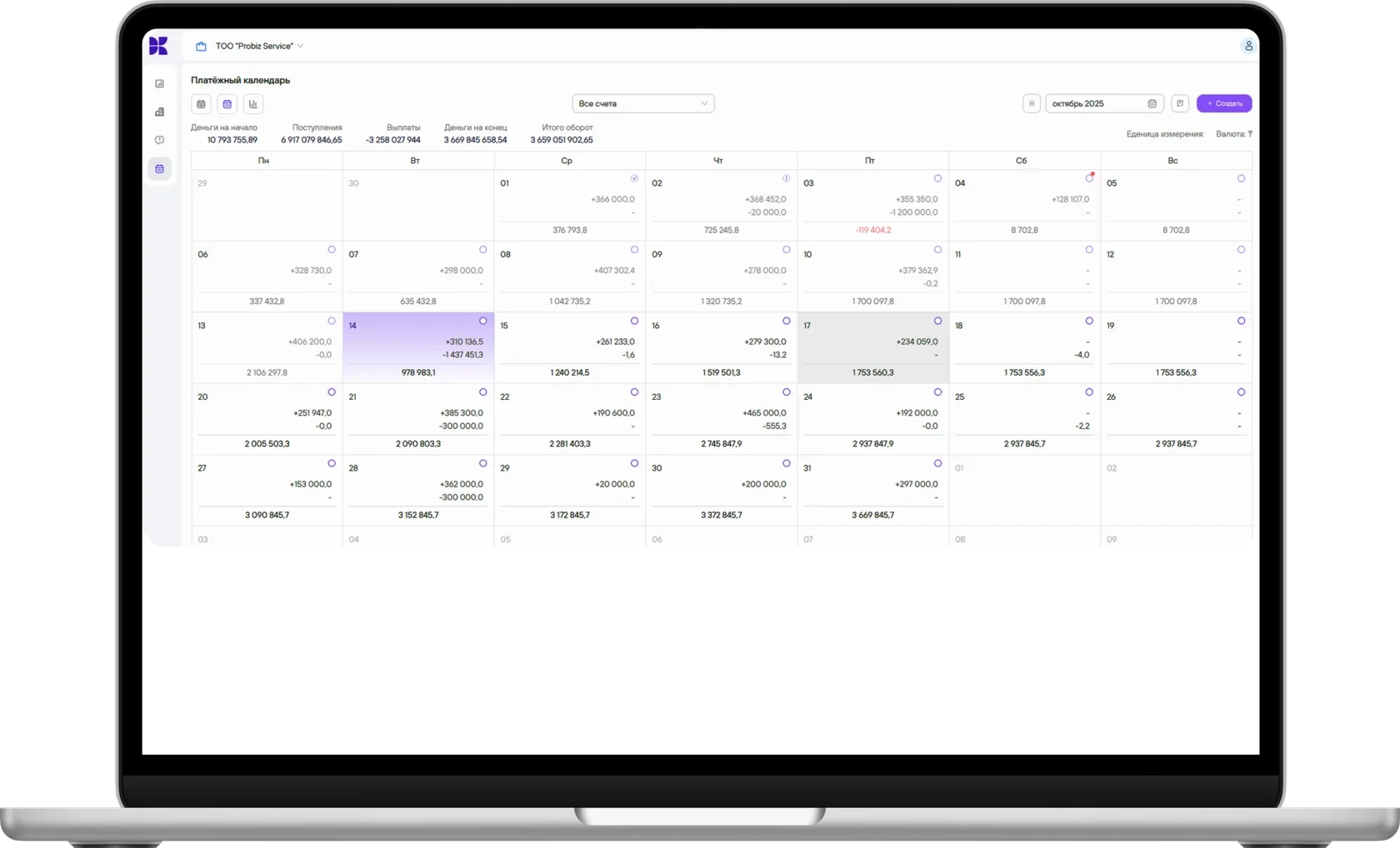 Представьте себе приборную панель в автомобиле. Вы видите скорость, уровень топлива и температуру двигателя одновременно. Так же работает и хороший платежный календарь. Он собирает все данные о будущих поступлениях от клиентов и о планируемых расходах в одном месте. И главное — он делает это без участия человека, автоматически забирая данные из учетных систем.