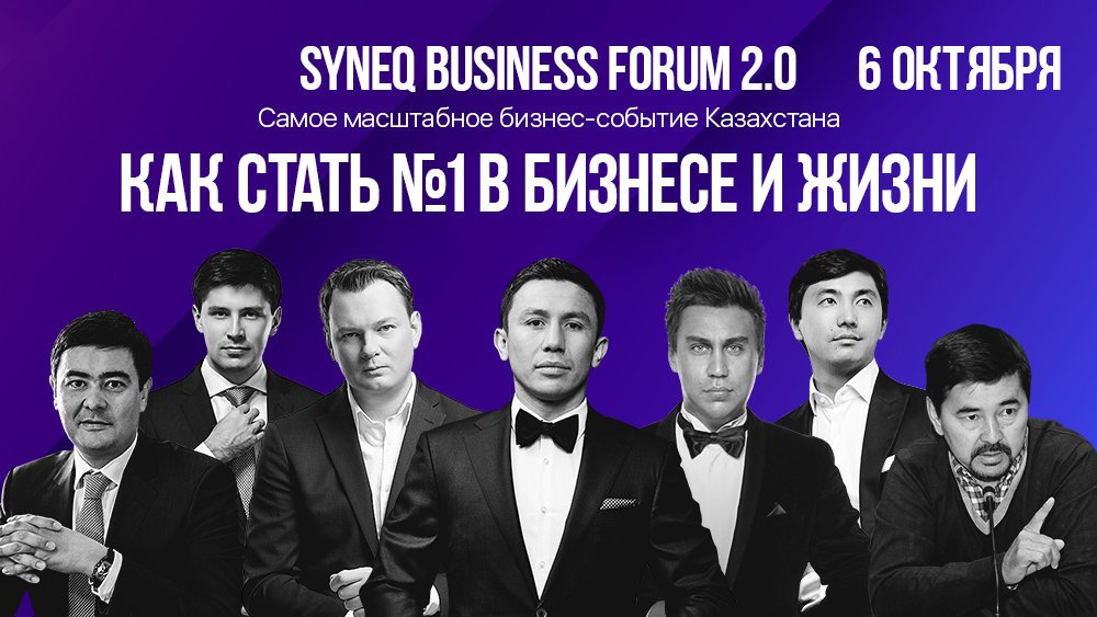 Уже в эту субботу, 6 октября 2018 года в Алматы состоится главное бизнес-событие осени - Syneq Business Forum. Раз в год мы собираем для вас лучших спикеров и примеры из реальной практики и отвечаем на вопрос "Как стать №1 в бизнесе и жизни?" Syneq Business Forum - это бизнес-форум для руководителей, собственников бизнеса, топ-менеджеров и первых лиц компаний Казахстана, где каждый может получить актуальную информацию о новейших трендах и готовые стратегические решения для нового прорыва в бизнесе и жизни. Компания SIRIN LABS представляет особенного гостя форума Геннадия Головкина - заслуженного мастера спорта Республики Казахстан, всемирно известного боксера, человека с несгибаемой волей к победе и характером настоящего чемпиона. В качестве партнера выступления легендарного боксера Syneq Business Forum выступит компания «FIN BET».