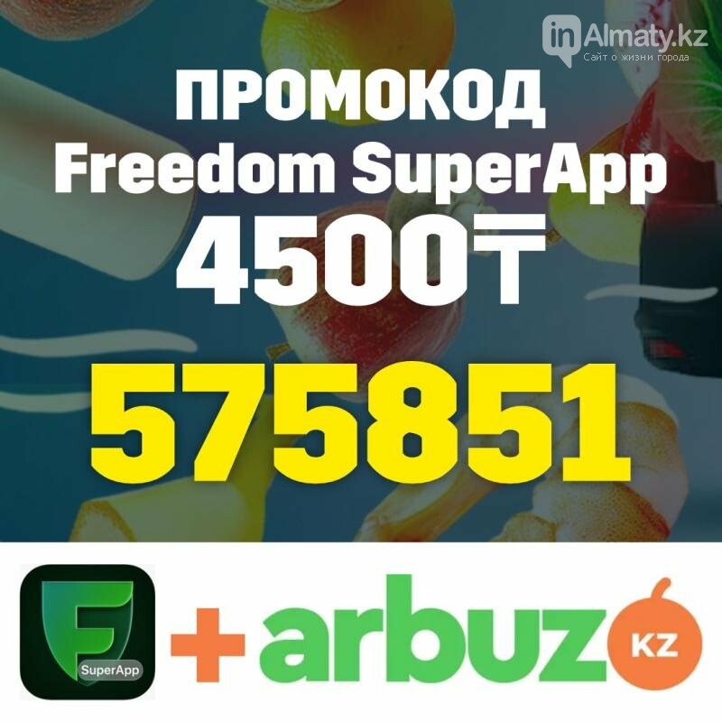 Хотите получить бонус от Freedom и скидку на покупки в Arbuz.kz? Используйте Фридом промокод 575851 — он подходит как для регистрации, так и для первой покупки в Арбузе (Фридом Продукты).